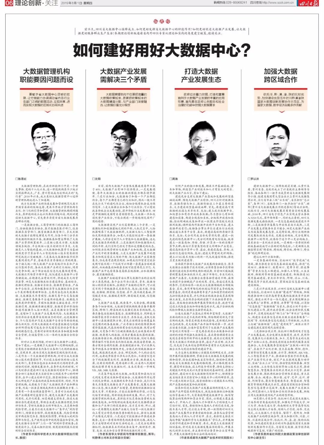 前不久,四川省大数据中心挂牌成立。四川日报邀请我院院长周涛教授等省内外四位专家从理论和实践的角度建言献策。